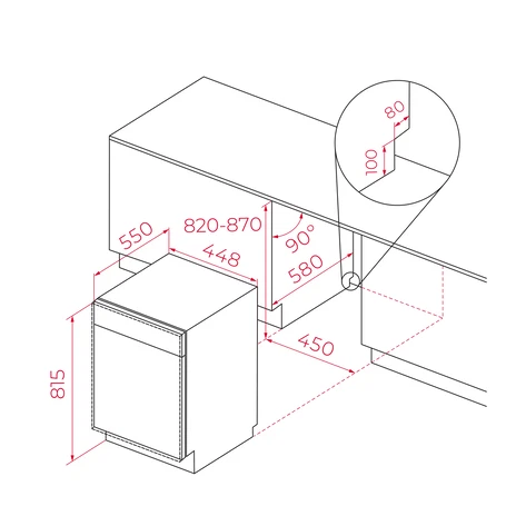 מדיח כלים אינטגרלי ברוחב 45 ס"מ ל-10 מערכות כלים, עם 8 תוכניות שטיפה.