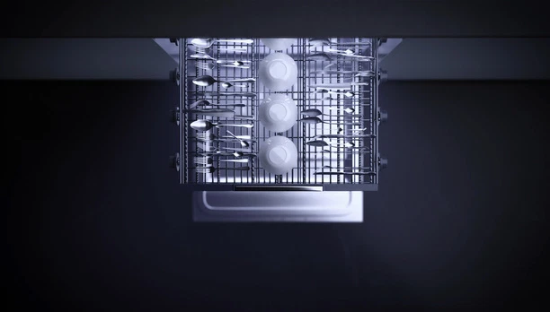 מדיחי הכלים שלנו שקטים כל כך, שבקושי תבחין שהם פועלים. פונקציית BeamOnFloor מקרינה אור כחול על הרצפה כדי להודיע שהמחזור בעיצומו — וכל זאת מבלי להפר את השקט והשלווה בביתך.